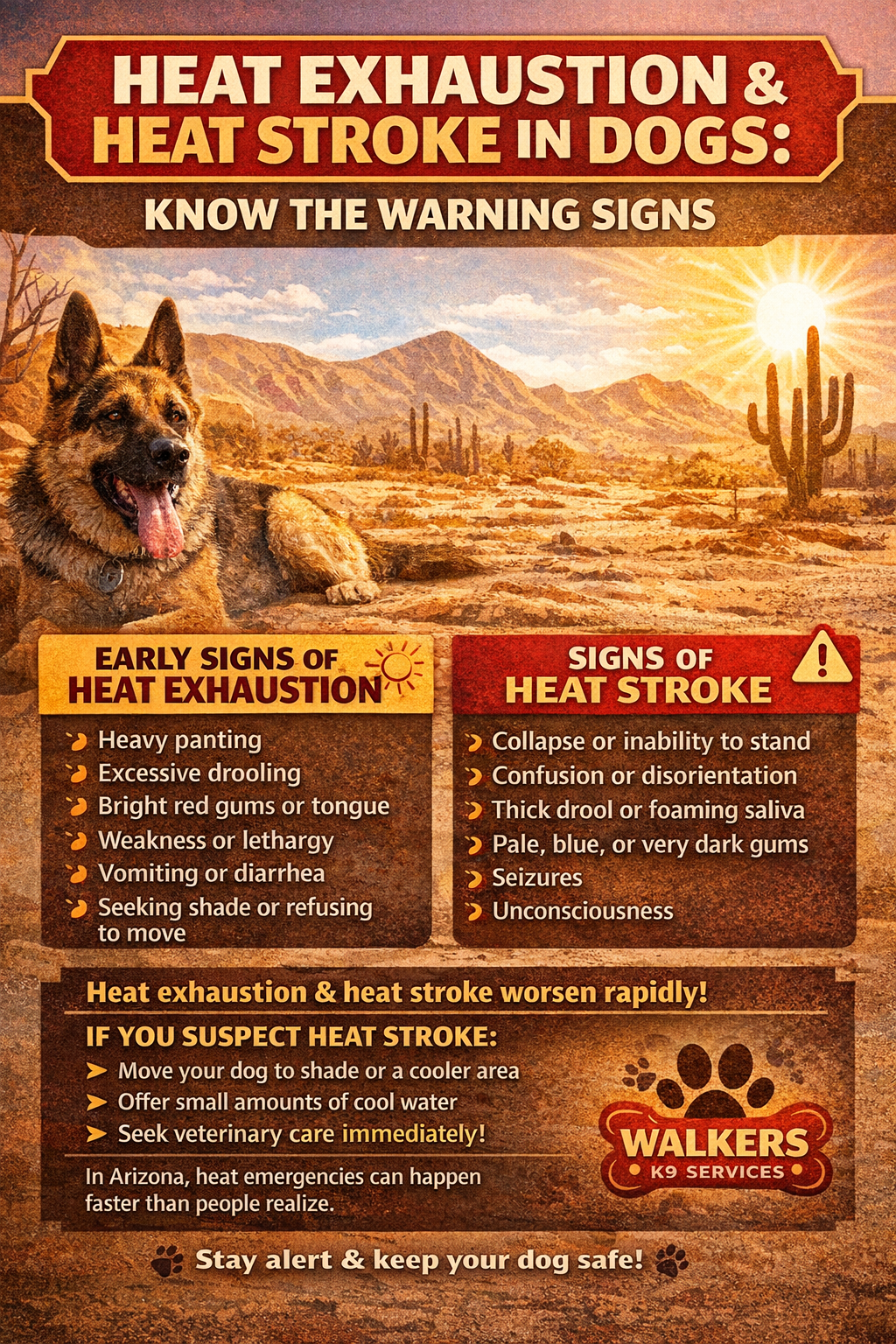 Arizona heat can become dangerous for dogs very quickly. As temperatures rise, every dog owner should know the early signs of heat exhaustion and heat stroke.