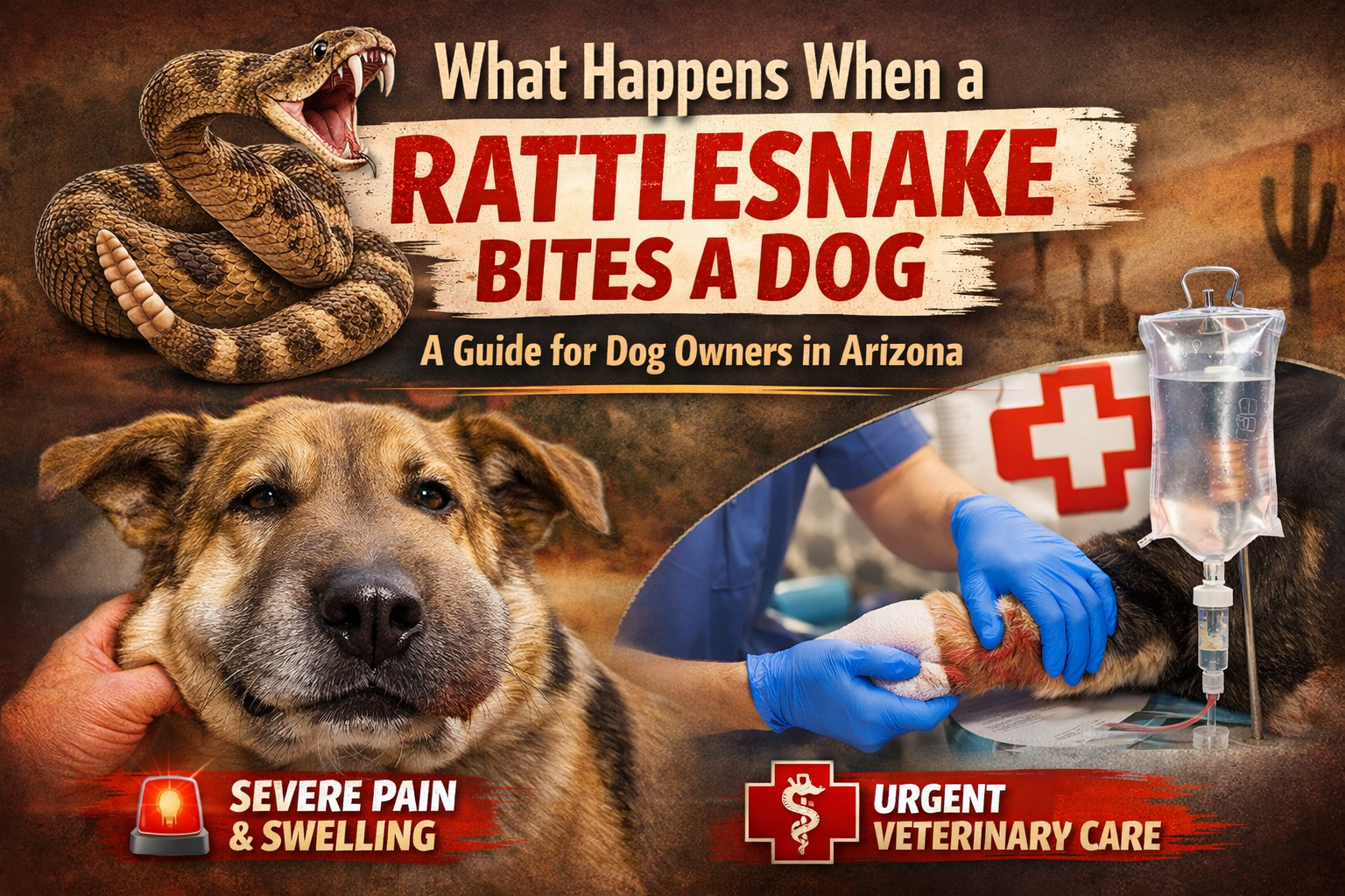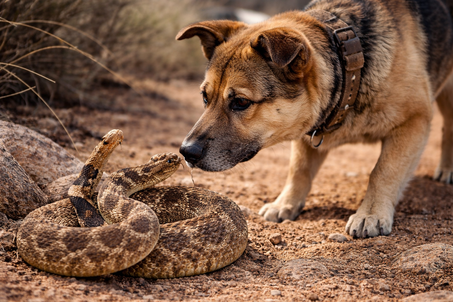 In Southern Arizona, rattlesnakes are a real danger for dogs. Curious by nature, many dogs will investigate the sound, smell, or movement of a snake. Unfortunately, that curiosity can lead to a bite — and when a rattlesnake bites a dog, it quickly becomes a serious medical emergency.
